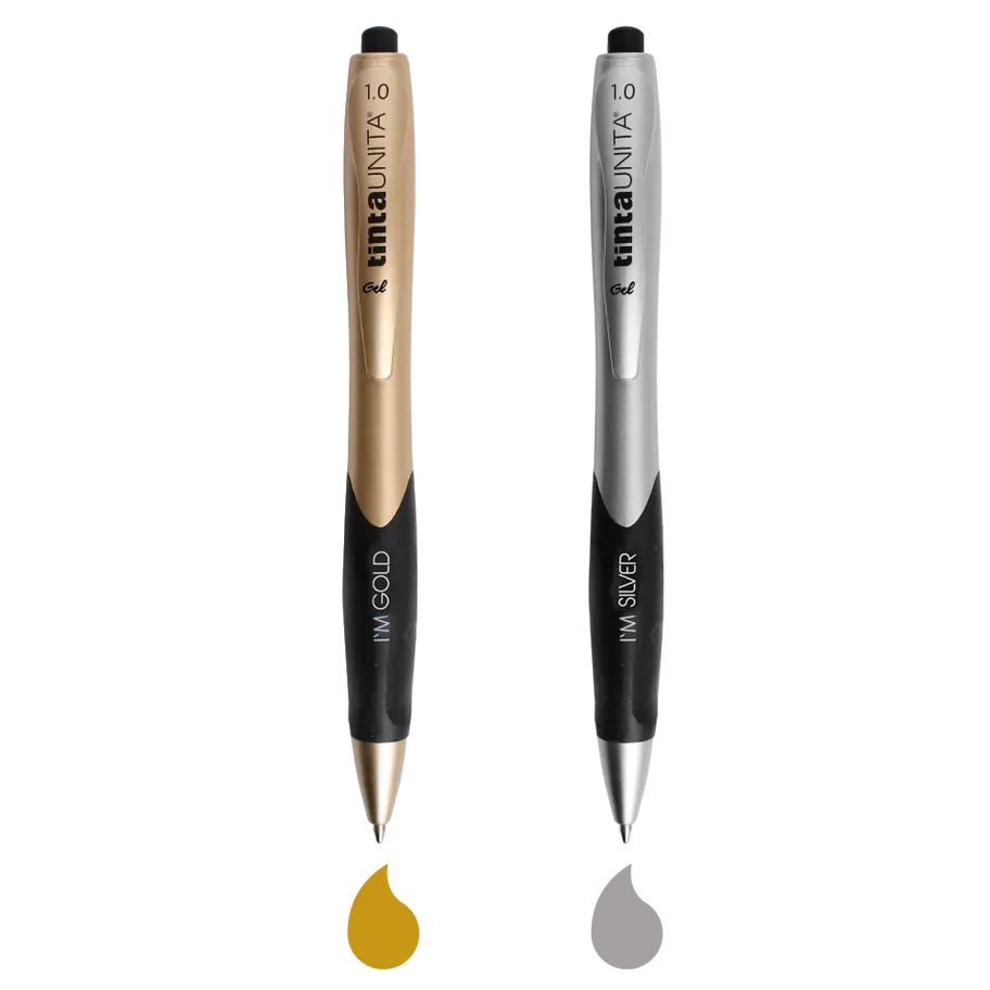 PENNA GEL CON PUNTA 1.0 NEI COLORI ARGENTO E ORO.